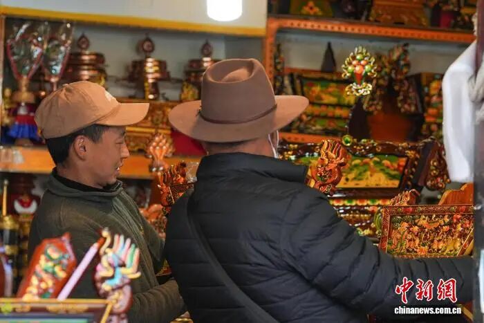 图为市民在八廓商城选购年货切玛盒。贡确 摄